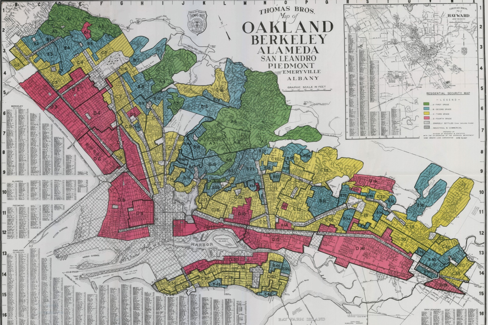 - Decompose neighborhoods of each color on a redlining map of Alameda into parallelograms and triangles to find the total square units of each neighborhood.