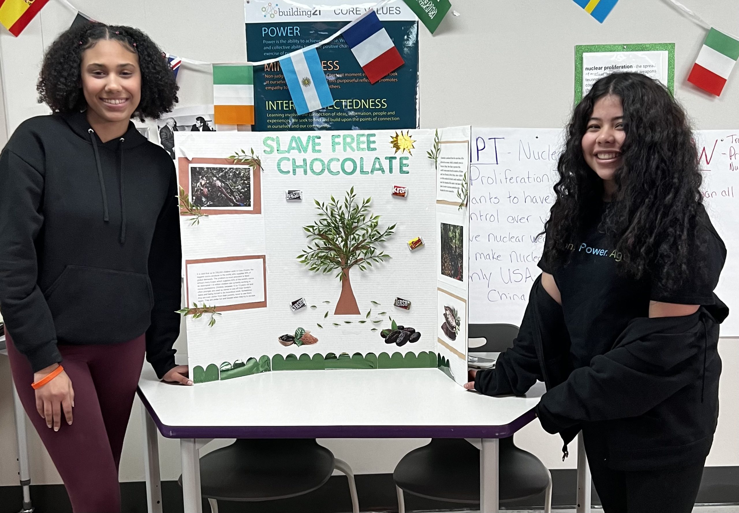 Finally, these learning cycles culminate in a special exhibition called Advocacy Day. Students choose between the two topics they studied: fair trade or genocide. Next, students design a visual presentation that must include an action step, such as purchasing fair trade brands, writing emails to representatives, or signing petitions.