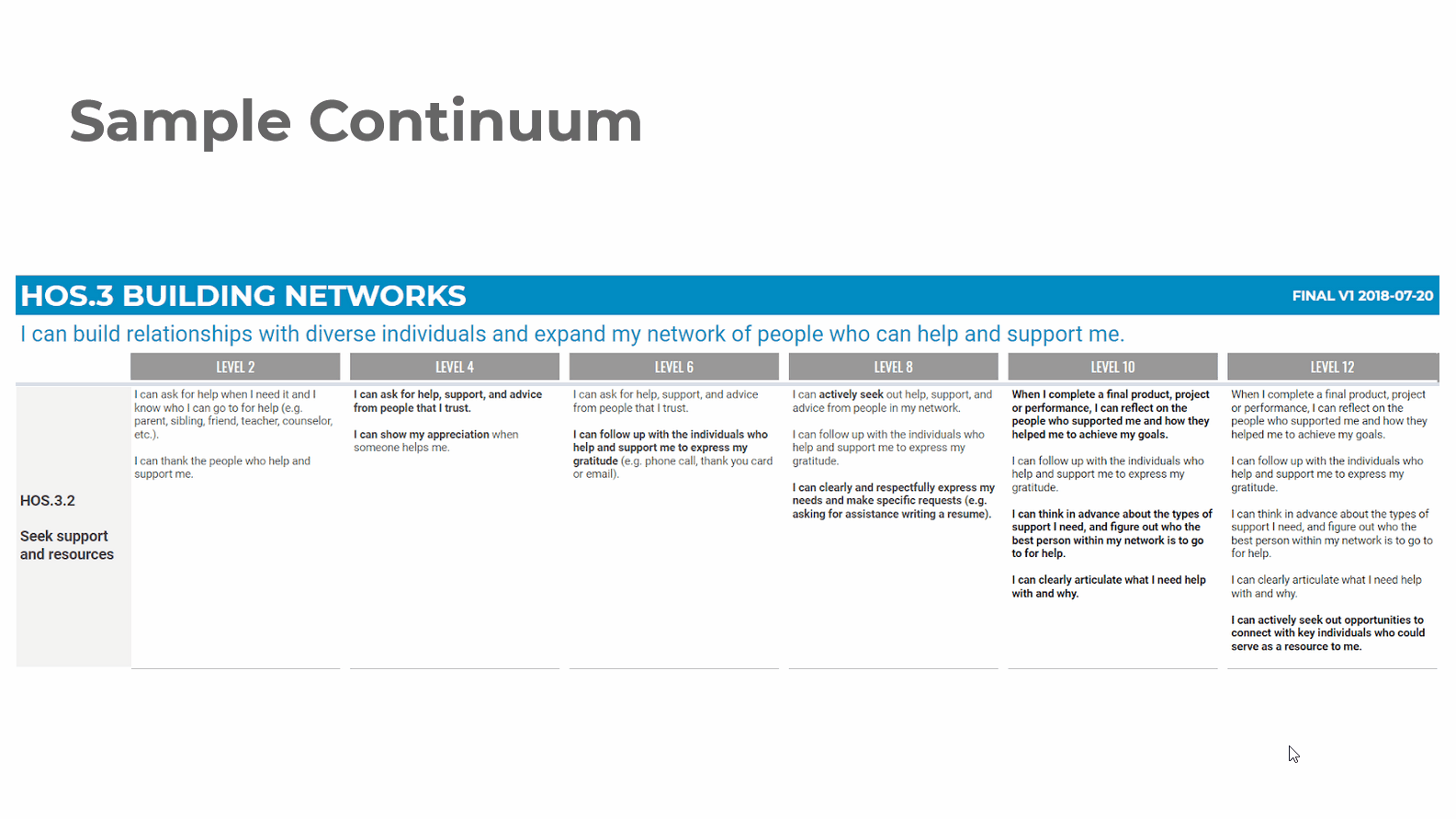 This competency set contains the following competencies. Access the resource to see all skills and continua.