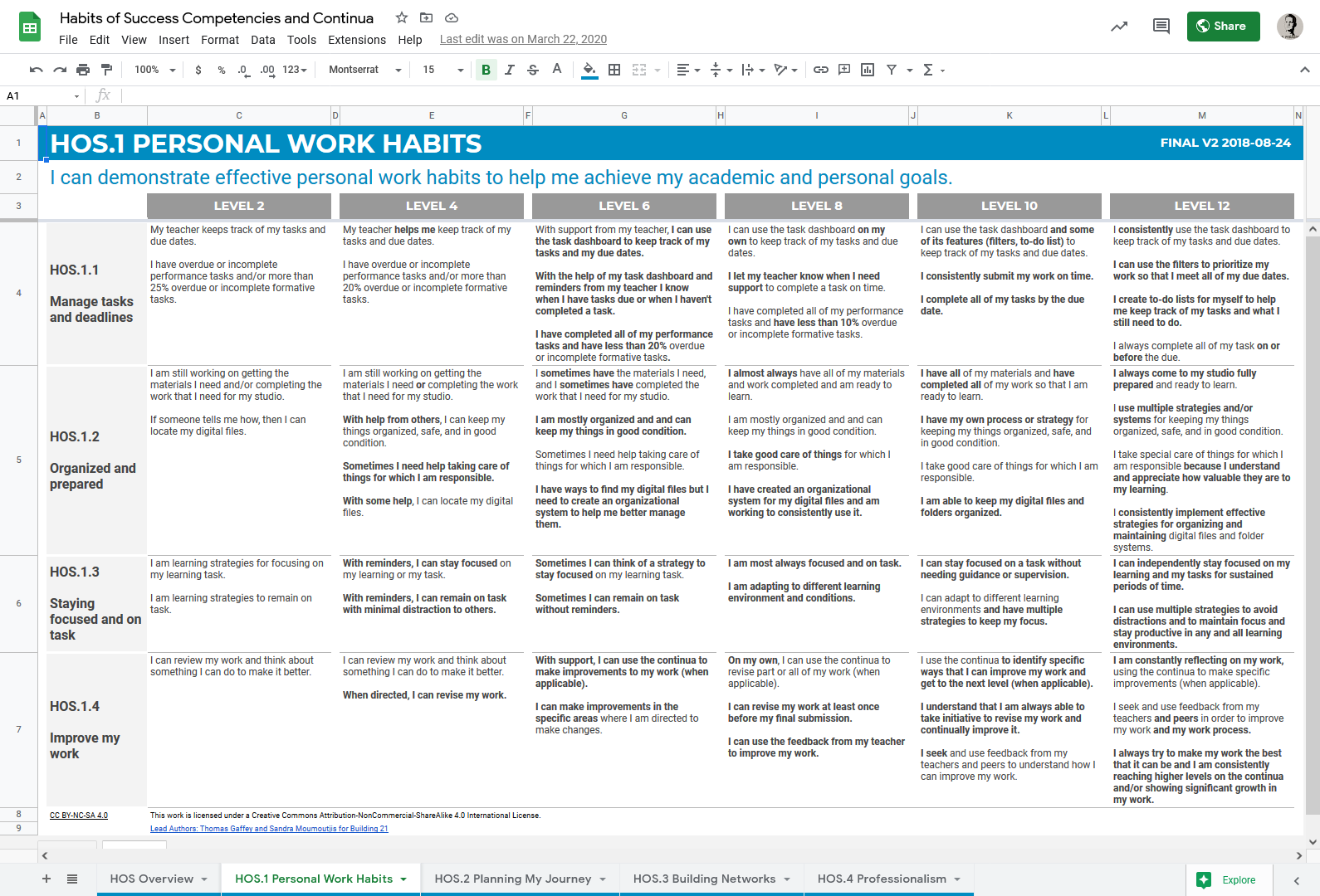 Habits of Success Competencies and Continua