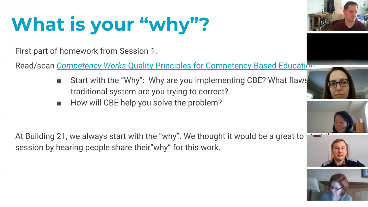 This webinar series covers some of the foundational work in the field and Building 21's implementation of CBE. We have included both the video recording and the slideshows used. With the slideshows, there are dozens of links to resources.